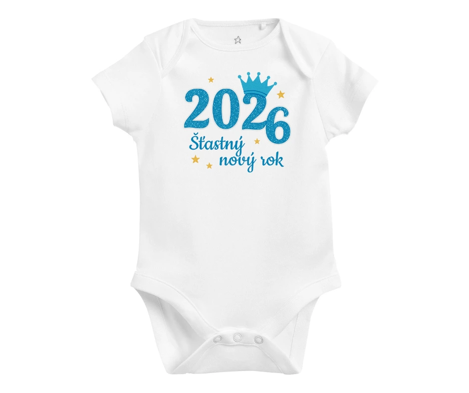 Roztomilé chlapecké body s motivem 2026 a modrou korunkou se skvěle hodí na první Silvestr nebo novoroční oslavy. Jemně třpytivá grafika v modrém odstínu působí slavnostně, ale zároveň hravě. Body je příjemné, měkoučké a vhodné i pro ty nejmenší miminka.