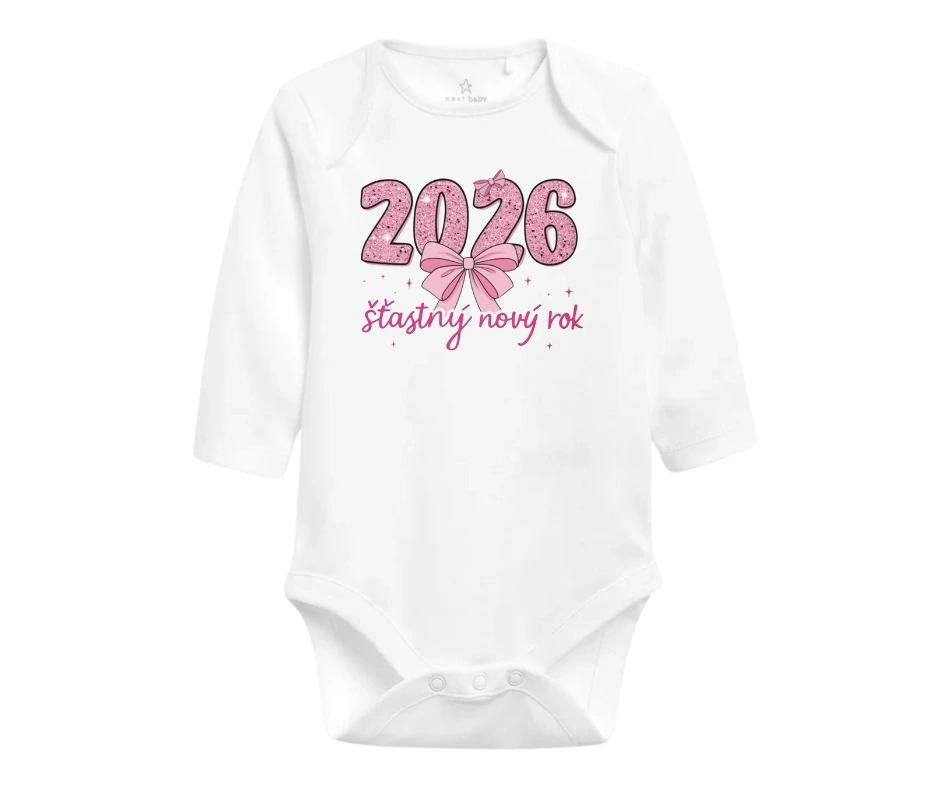 Body 2026 pro holčičku – růžová mašle a šťastný nový rok