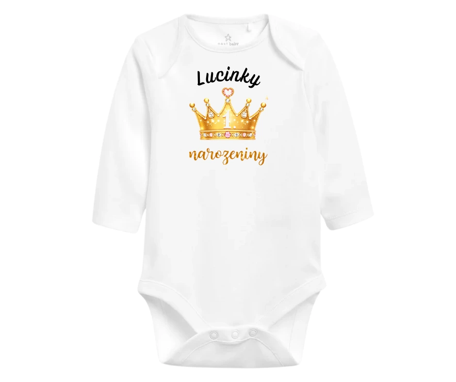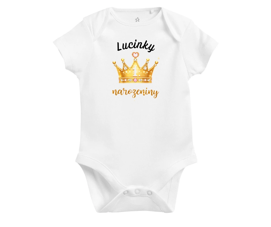 Luxusní body pro oslavu 1. narozenin se zlatou korunkou a jménem na přání.
