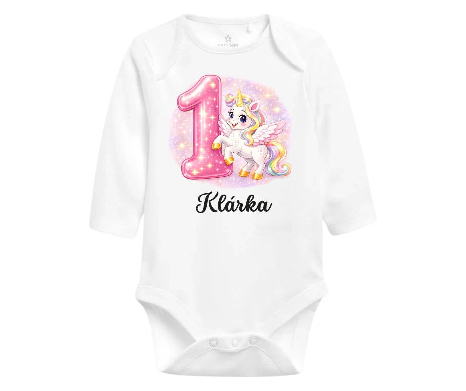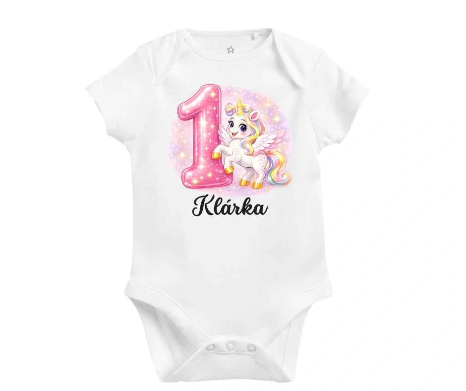Body na 1. narozeniny – roztomilý jednorožec a růžová jednička se jménem