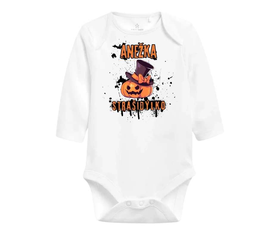 Body je možné doplnit i o jméno vašeho děťátka, takže vznikne originální kousek, který nikdo jiný mít nebude. Perfektní na podzimní focení, oslavu Halloweenu i jako památku na první strašidelný svátek.