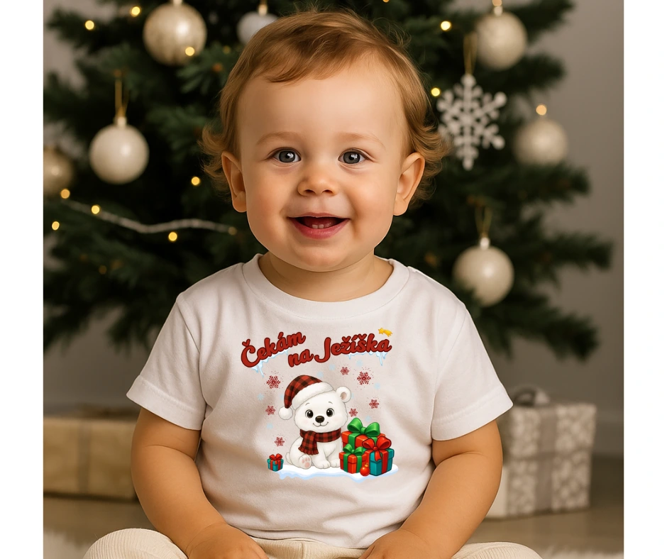 Čekám na Ježíška – tričko s ledním medvídkem