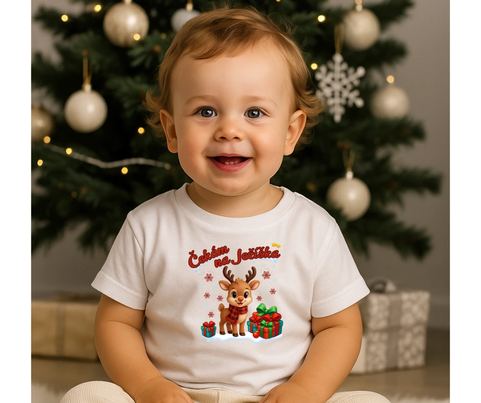 Tenhle malý sobík se nemůže dočkat dárků – a možná je právě on nese z Ježíškovy dílny! Vesele laděný motiv je ideální pro vánoční hrátky, focení i jako milý mikulášský dárek.