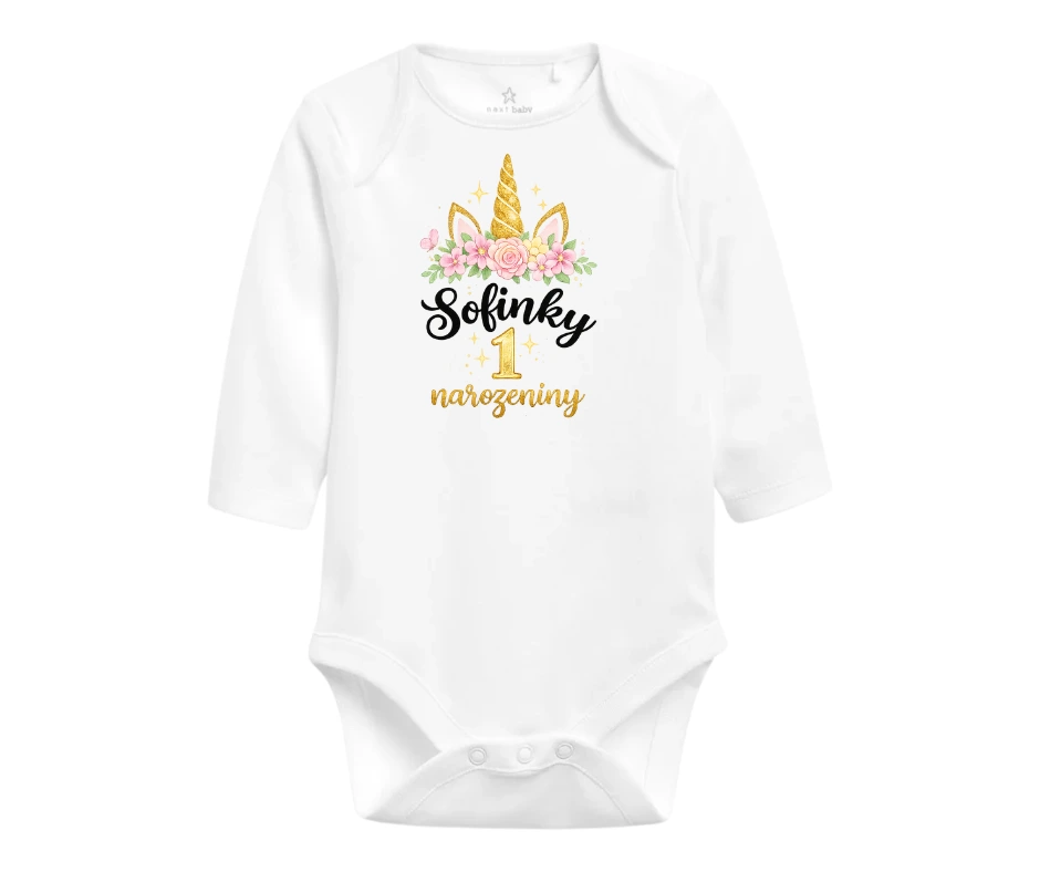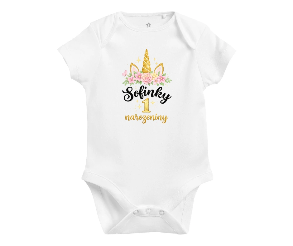 Dětské body s jednorožcem a vlastním jménem – 1. narozeniny