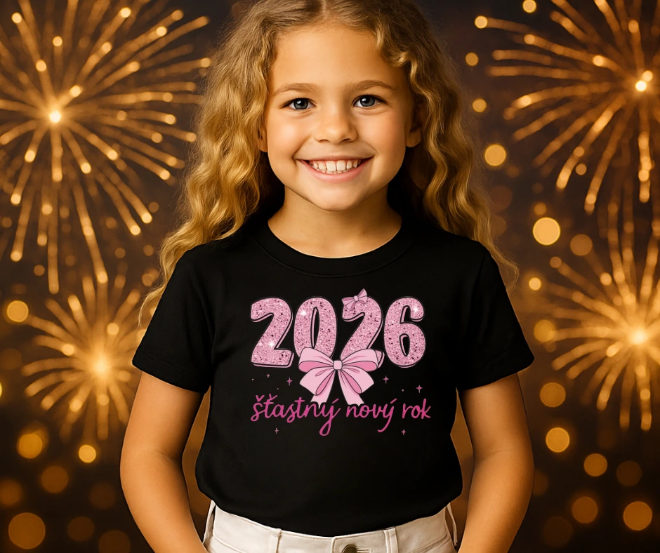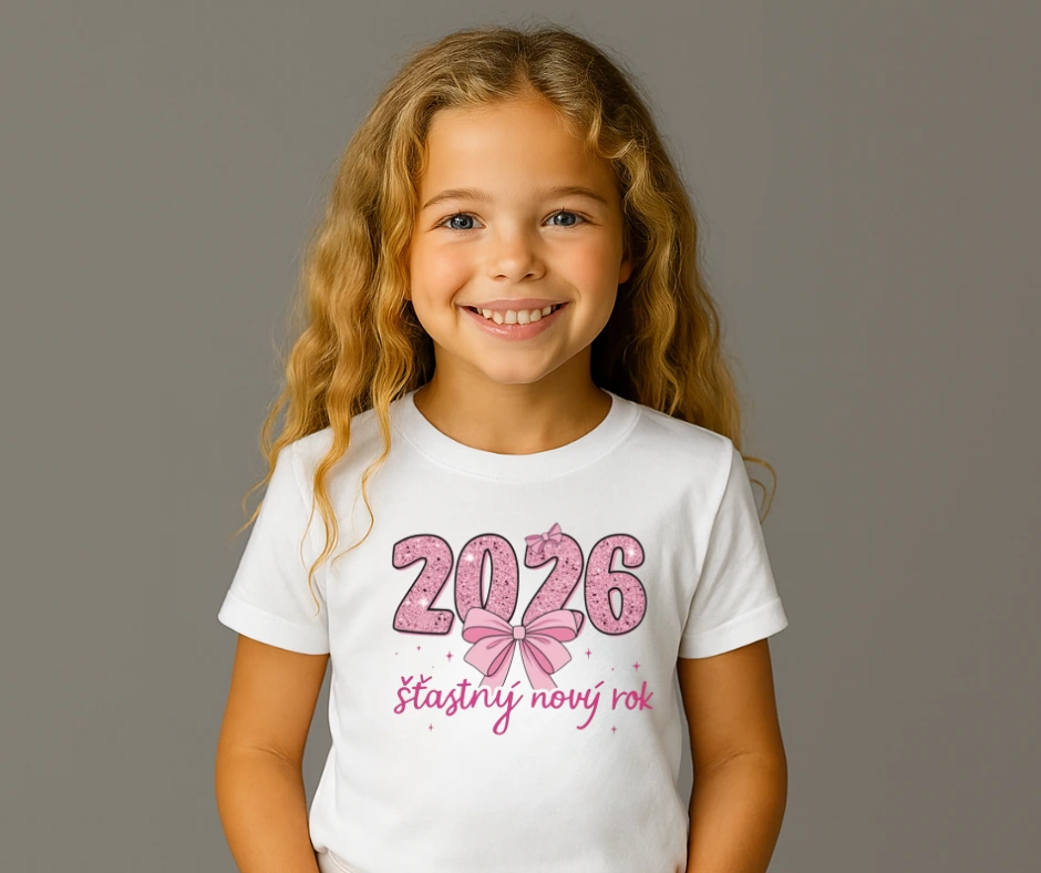 Dětské tričko 2026 – růžová mašle a šťastný nový rok