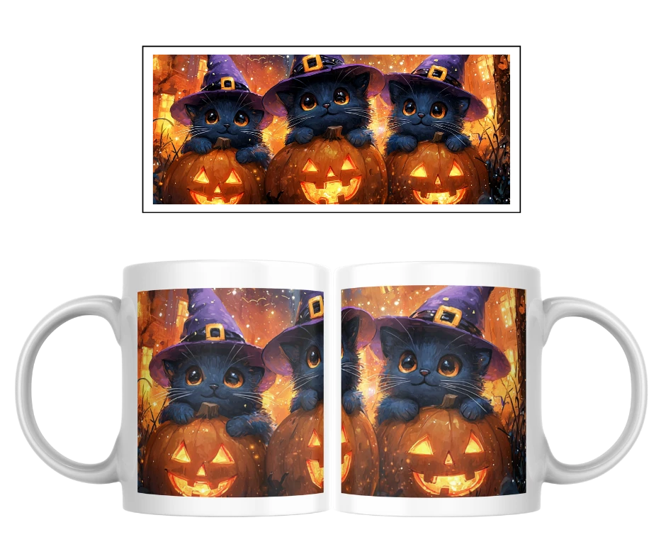 Halloween hrnek – čarodějné kočičky a dýně