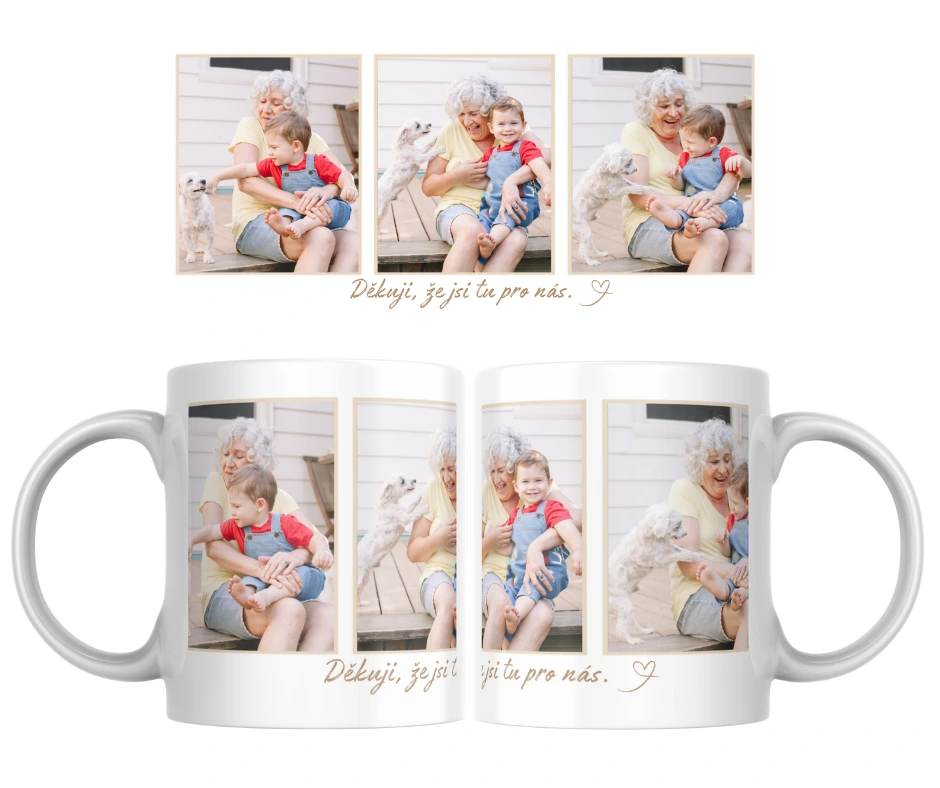 Velikost jedné fotografie na hrnku je přibližně 6,2 × 7 cm.