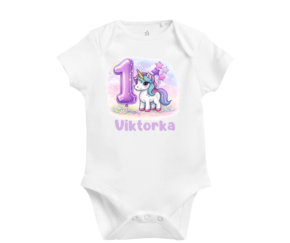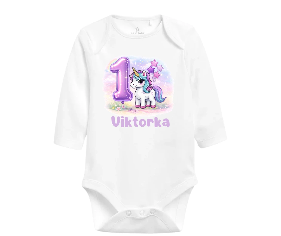 Kojenecké narozeninové body s jednorožcem a jménem – první narozeniny