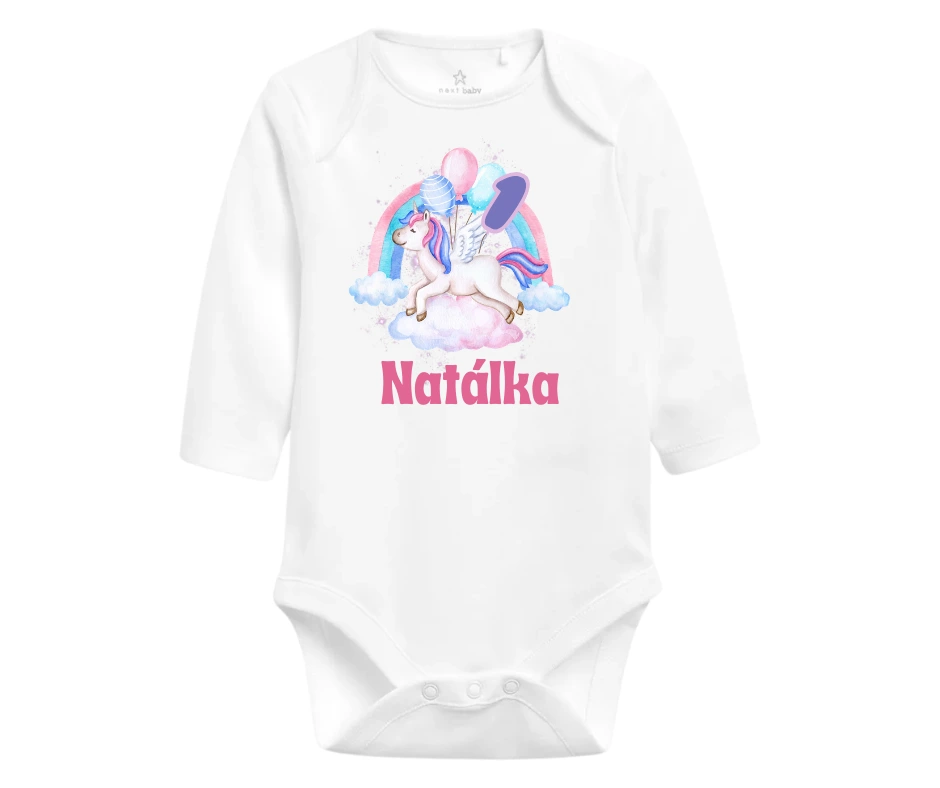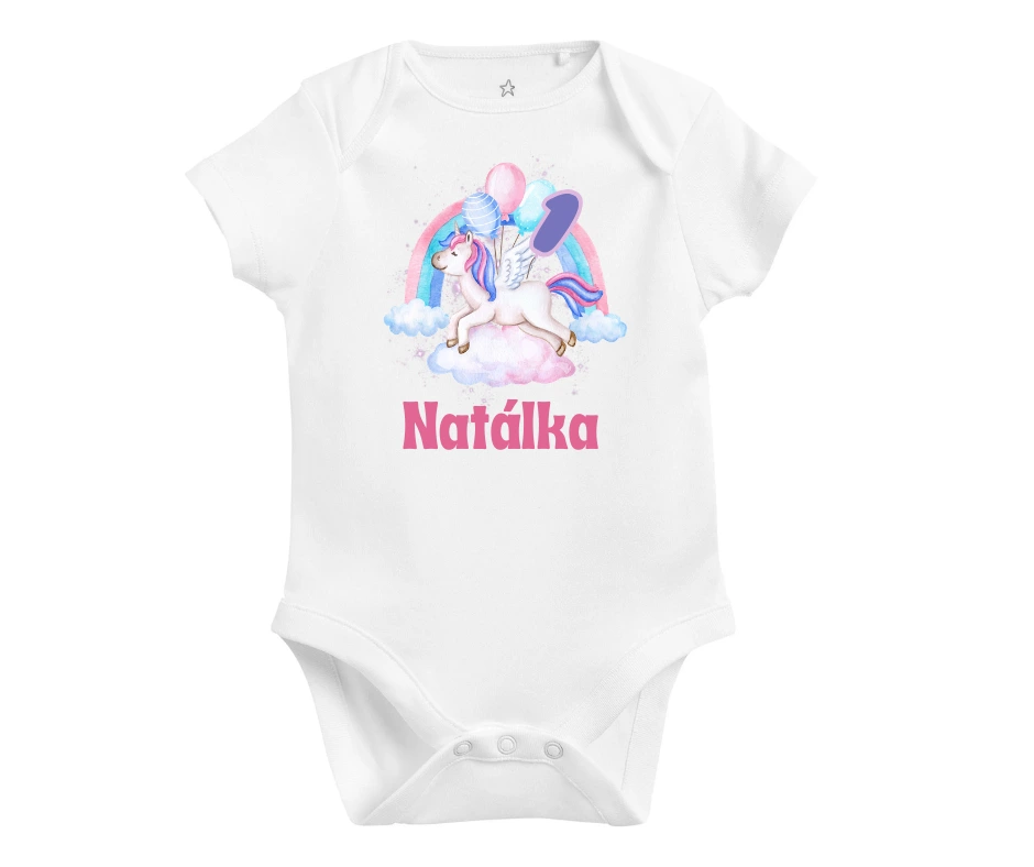 Kojenecké narozeninové body s jednorožcem na obláčku – první narozeniny