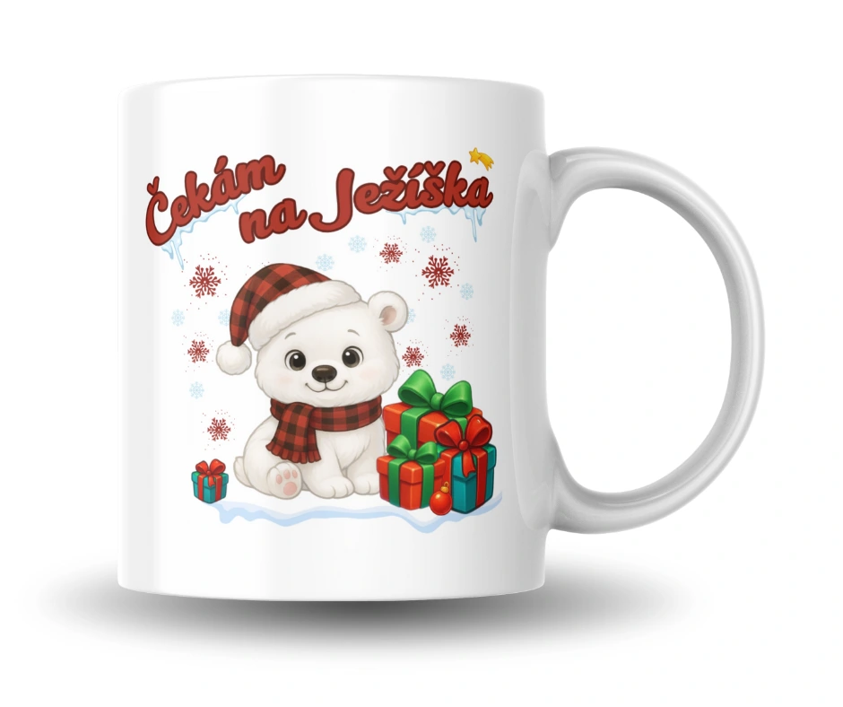 Lední medvídek Čekám na Ježíška hrnek