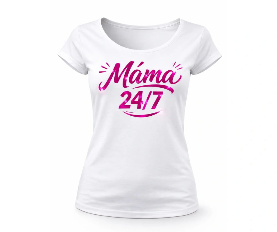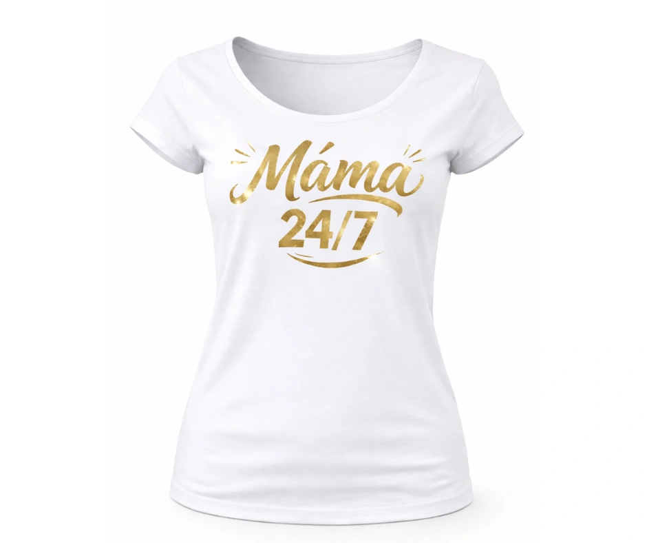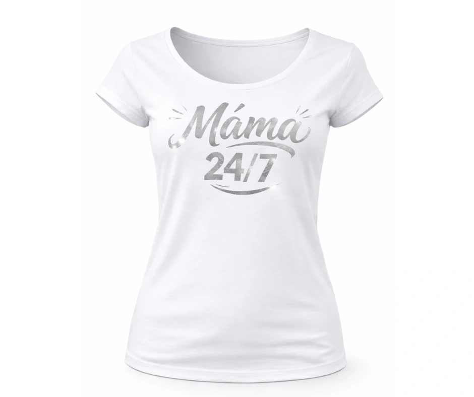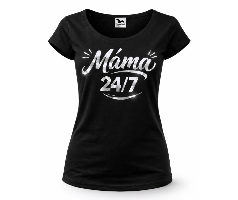 Tričko „Máma 24/7“ pro maminky – bílé i černé, metalické varianty