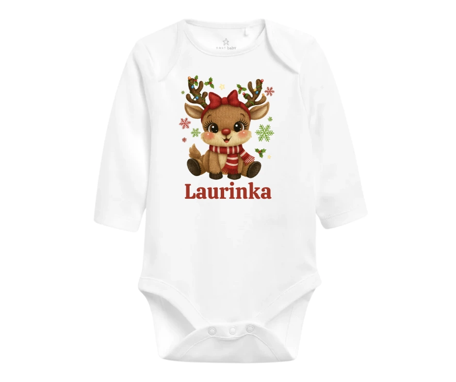 Roztomilá sobička s červenou mašlí a šálou čeká na Ježíška společně s tvojí princeznou. Jméno na přání z něj dělá jedinečný vánoční kousek – skvělý třeba i na focení pod stromečkem.