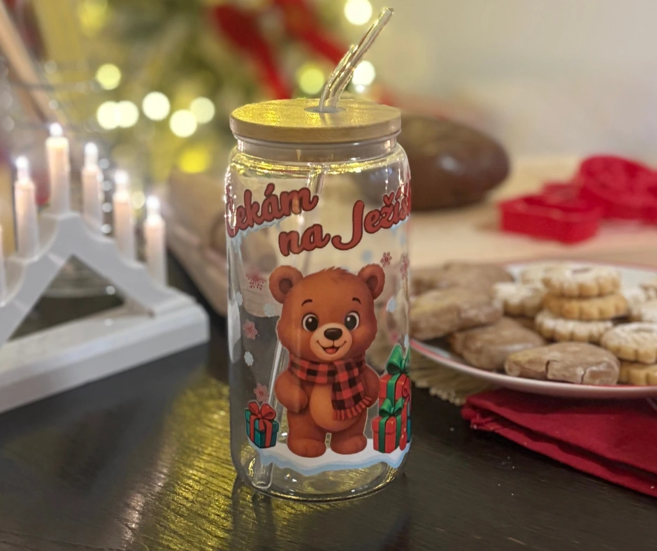 Roztomilá vánoční sklenička s medvídkem a nápisem Čekám na Ježíška přinese do každého dne kouzlo Vánoc. Je ideální na kakao, džus, smoothie nebo oblíbený vánoční nápoj. Díky bambusovému víčku a brčku si ji zamilují děti i dospělí.